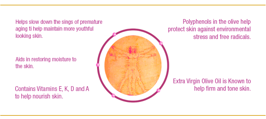 Mejoría del brillo, textura y elasticidad de la piel. Propiedades antienvejecimiento (ácido oleico, polifenoles, vitamina E).
